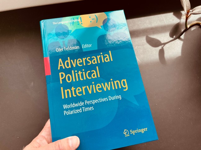 Kesällä ilmestyi Ofer Feldmanin toimittama tietokirja Adversarial political interviewing, jossa on 18 tutkimusartikkelia tutkijoilta eri puolilta maailmaa. Artikkelien lähestymistavat ja -kohteet ovat hyvin erilaisia, mutta yhteistä niille on, että ne kaikki kohdistuvat television poliittisiin haastatteluihin. Kirjan on kustantanut Springer.